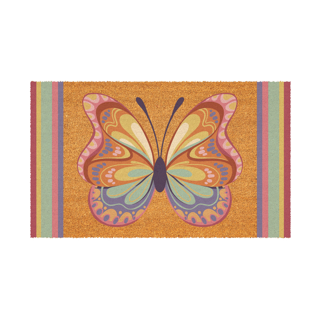 Welcome spring into your home with the Bunny Blooms Radiant Butterfly Coir Mat. Featuring a vibrant butterfly design, this mat is perfect for adding a touch of color to your doorstep.