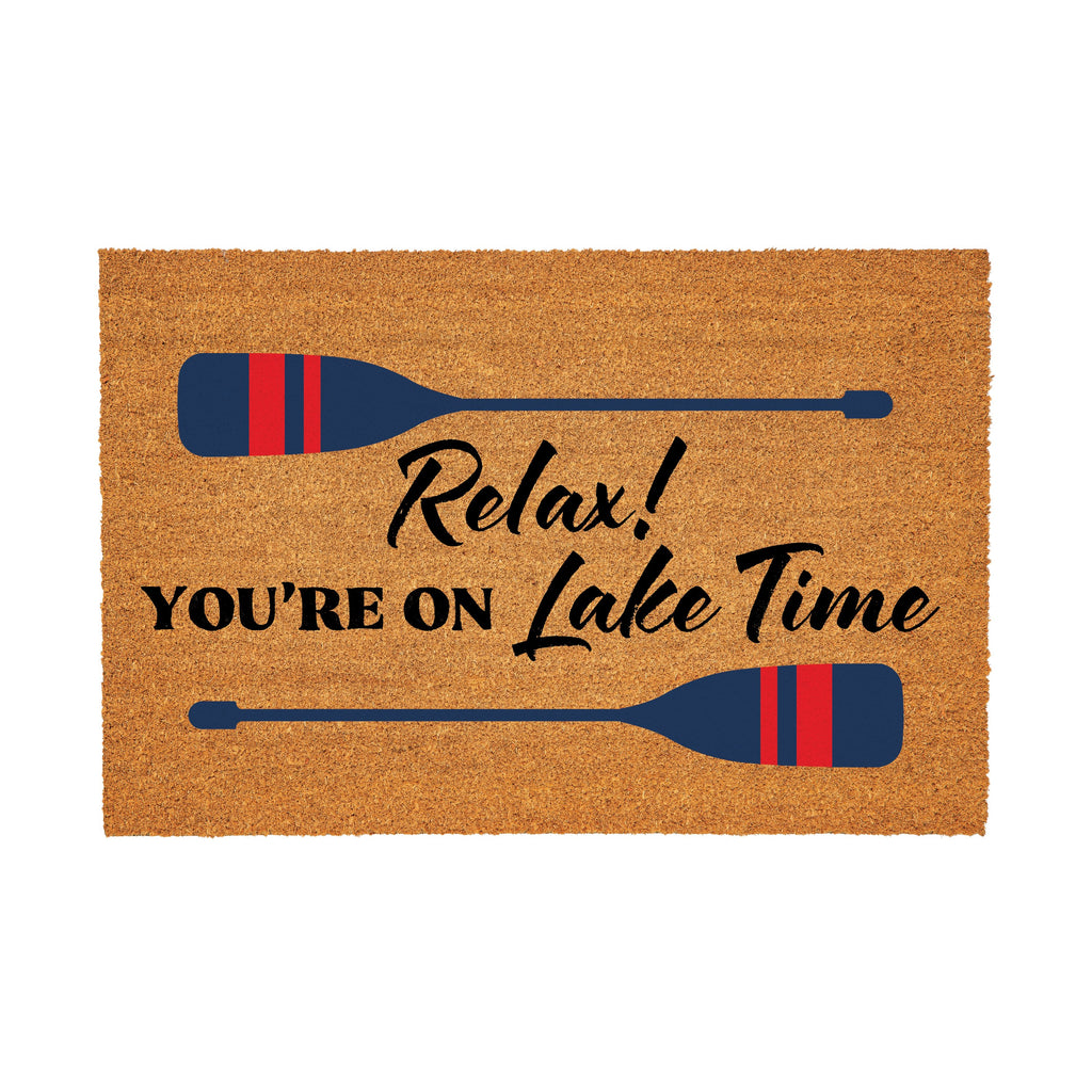 Welcome guests with the Lake Coir Mat, featuring a charming paddle design and a warm 'Relax! You're on Lake Time' message. Perfect for adding a touch of lakeside charm to your entryway.
