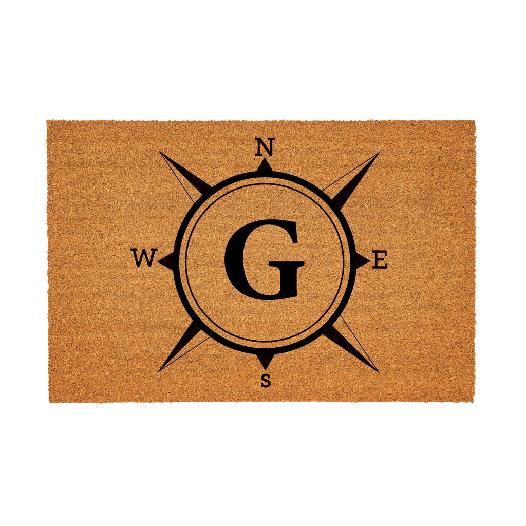 Welcome guests with the Coastal Coir Mat Compass Monogram, featuring a timeless compass design and personalized initial on durable coir material.