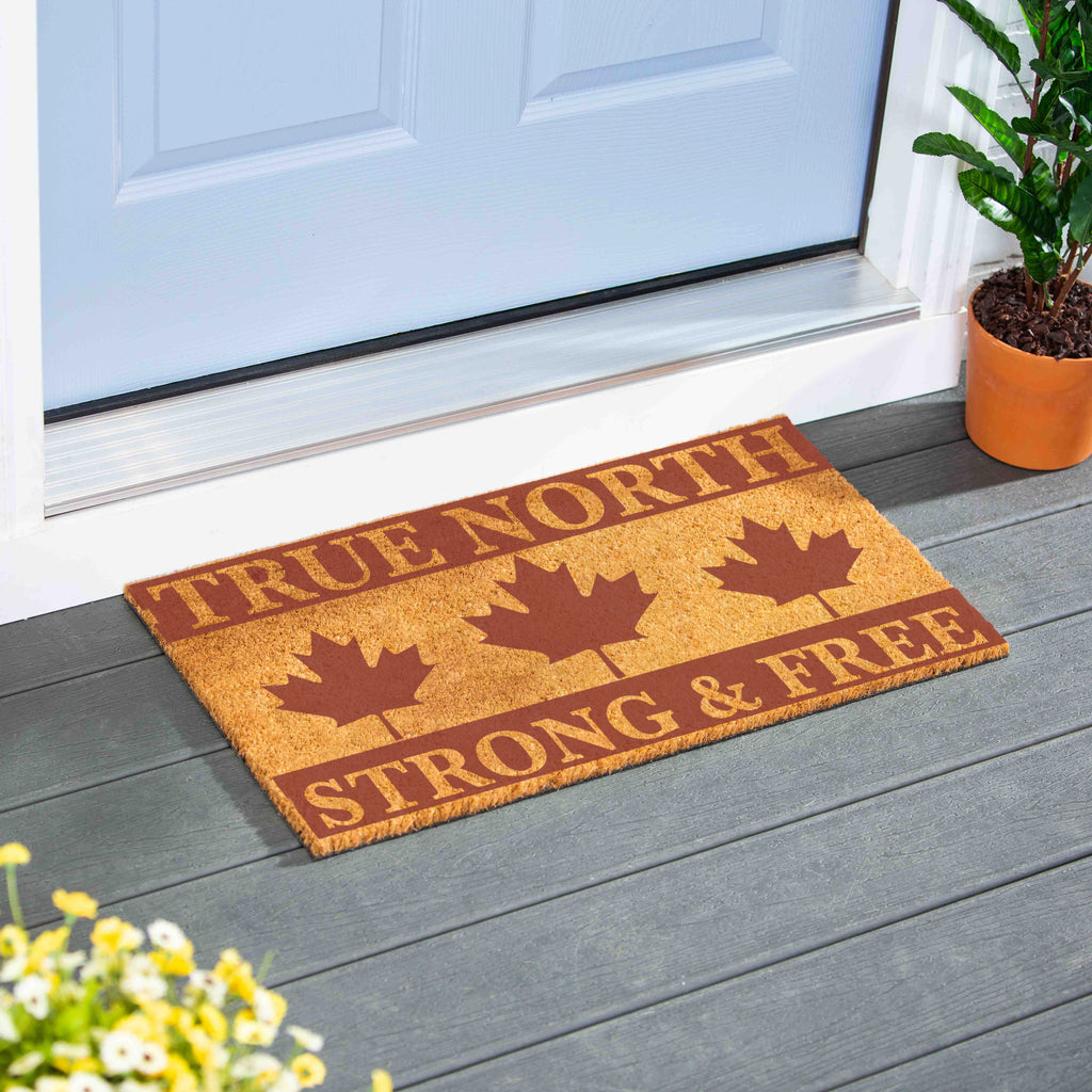 Celebrate Canadian pride with the Canada Strong True North Coir Mat, featuring a bold maple leaf design. Perfect for adding a patriotic touch to any entryway.