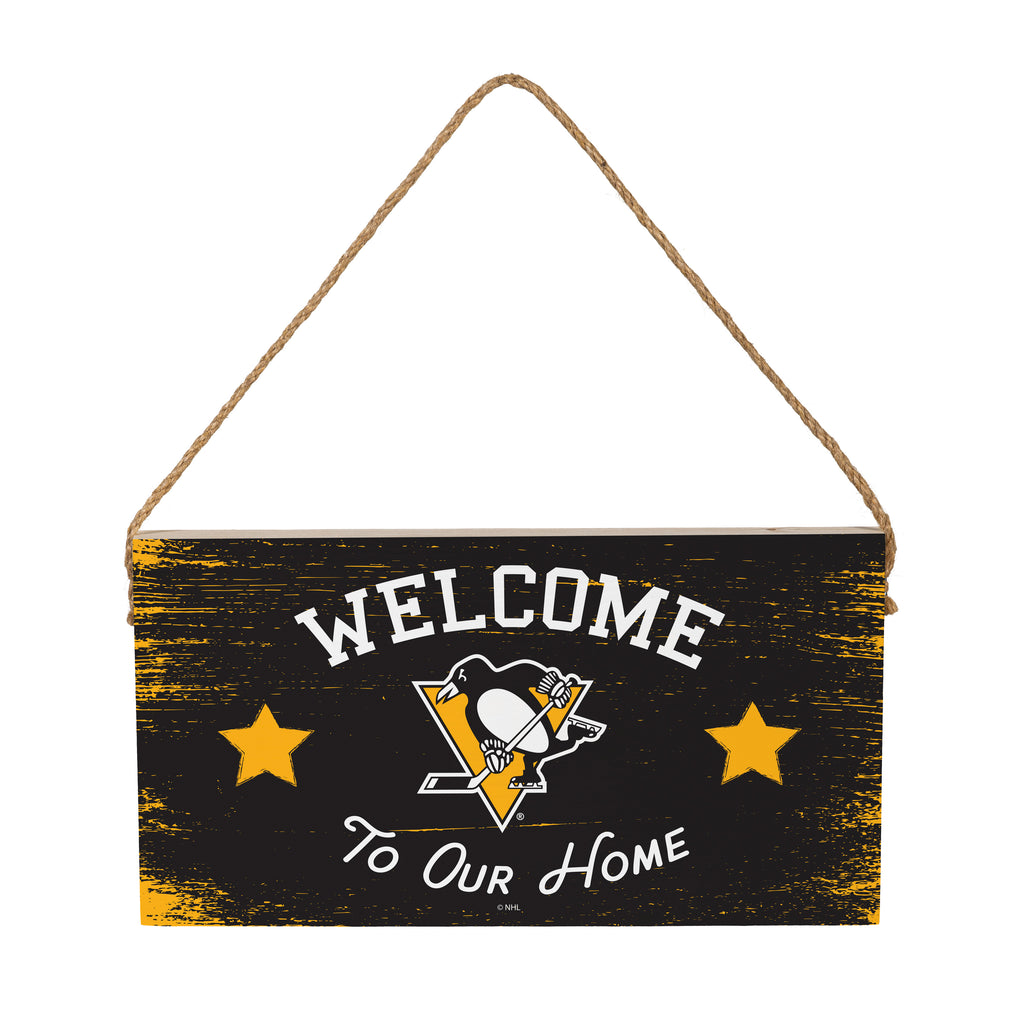 Show your support for the Pittsburgh Penguins with this stylish wood wall sign, perfect for any fan's home decor. The sign features the iconic team logo and welcoming message, making it a great addition to your wall decor.
