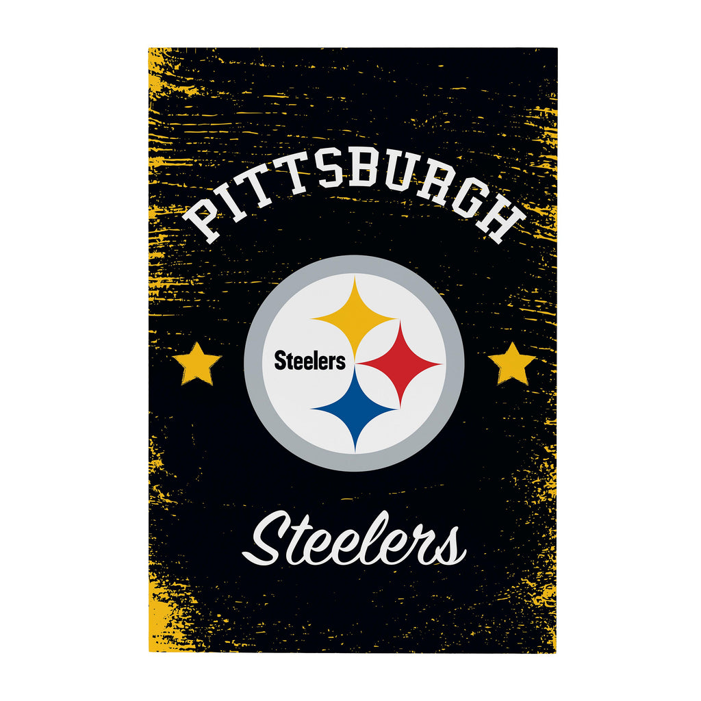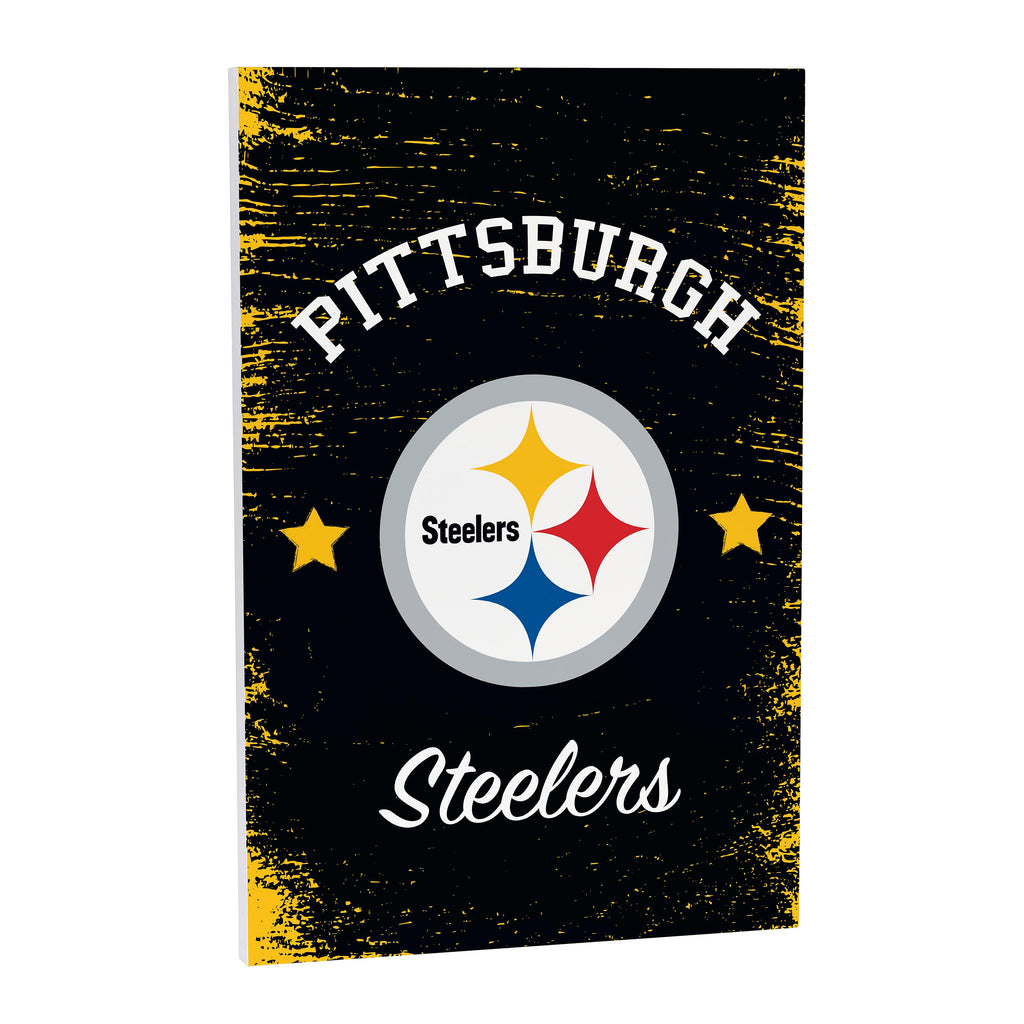 Show off your team spirit with this Pittsburgh Steelers wood wall sign, perfect for any fan's home decor. The bold design and team colors make it a standout piece for any room.
