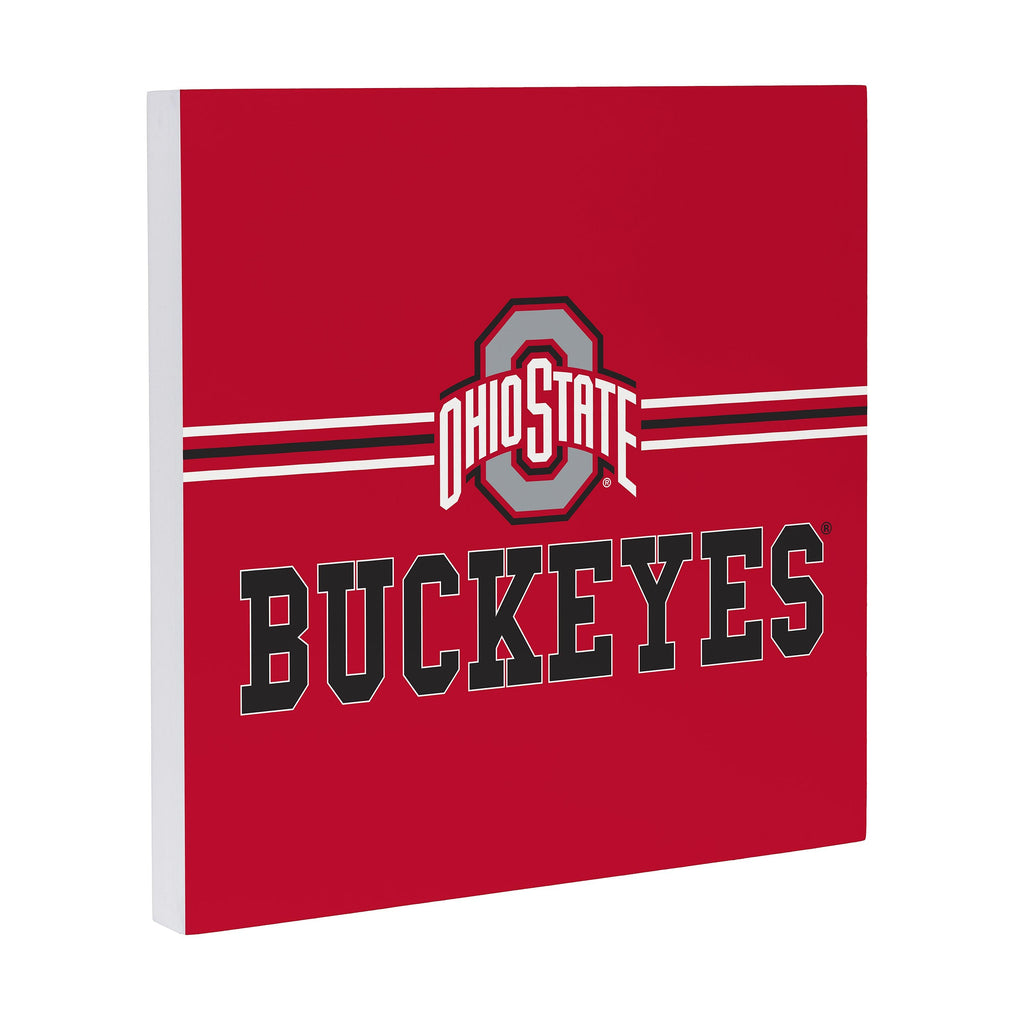 Show your team spirit with this Ohio State University Wood Wall Sign. Featuring the iconic Buckeyes colors and logo, this 12x12 wall art is perfect for any fan's home decor.