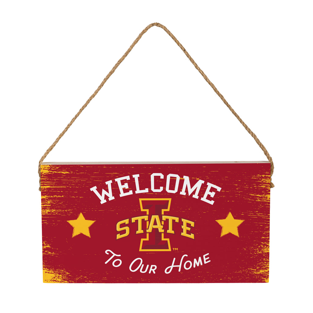 Show your Cyclone pride with this Iowa State University wood wall sign, perfect for adding a spirited touch to any room. Crafted with a rustic wooden finish, it features 'Welcome to Our Home' in bold letters.
