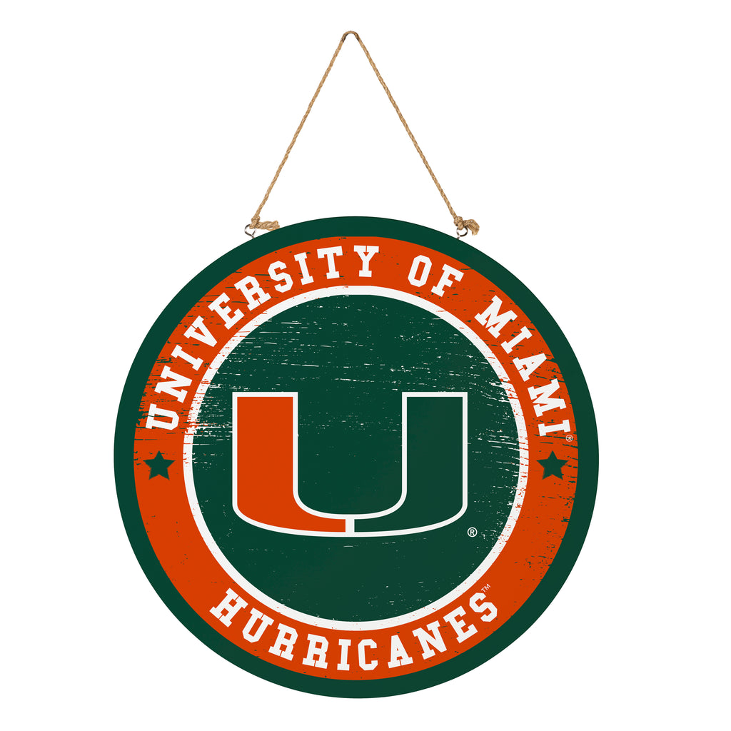 Showcase your support for the University of Miami with this vibrant round door decor, featuring the iconic logo and colors. Ideal for fans, this piece adds a touch of team spirit to your home or office entryway.