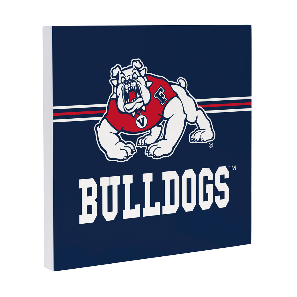 Show your team spirit with this Fresno State Wood Wall Sign, perfect for any Bulldogs fan's home. The bold design features the iconic team logo and colors on a sturdy wooden square.