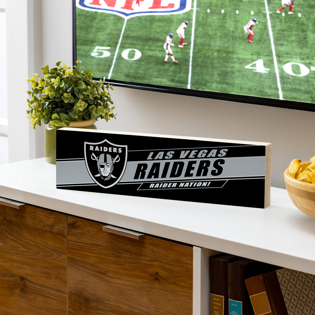 Show your team spirit with this Las Vegas Raiders mantle sign, perfect for any fan's home decor. This sleek and stylish sign demonstrates your allegiance with bold team colors and logo.