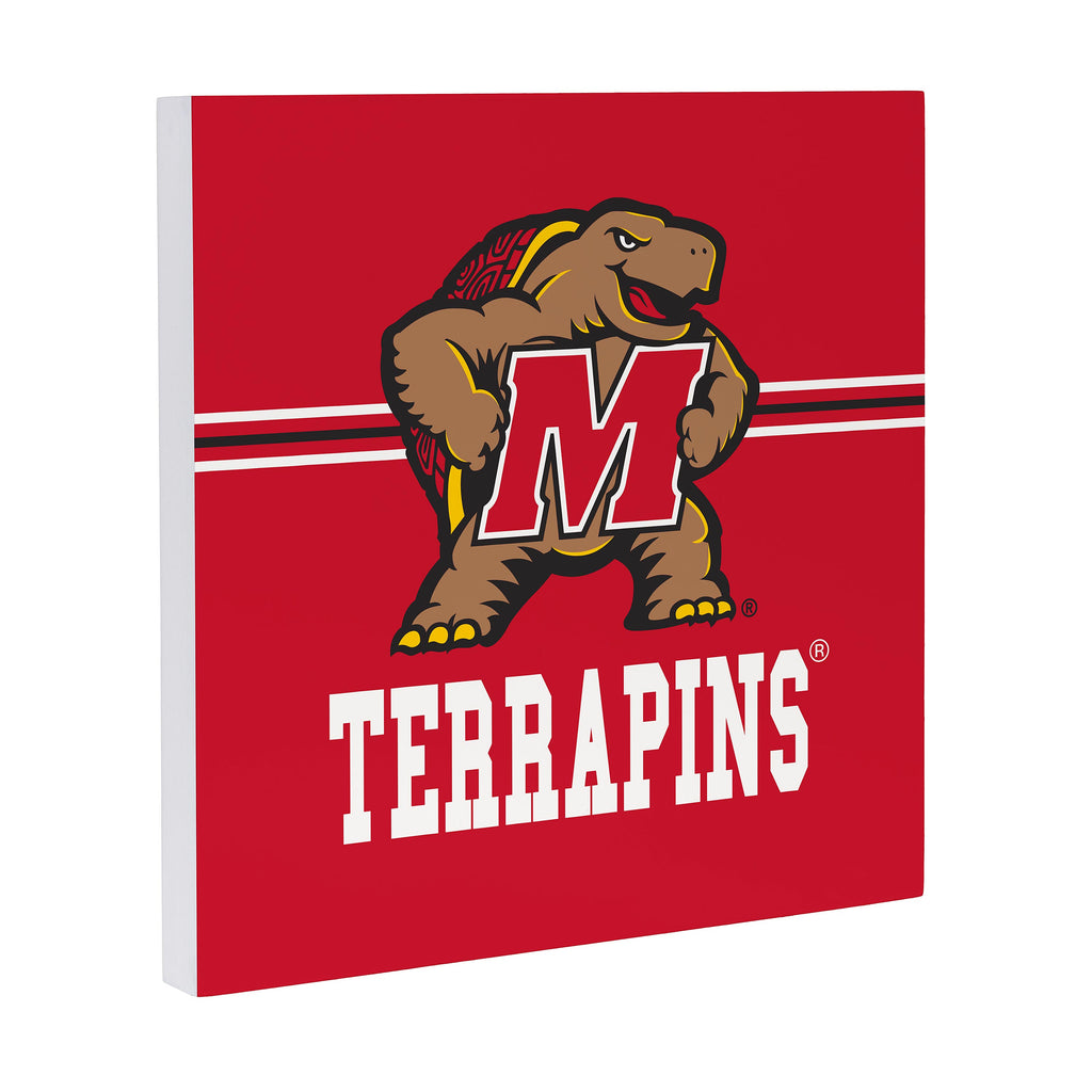 Show your school spirit with this University of Maryland wood wall sign, perfect for any Terrapins fan. The vibrant red design features the iconic mascot and logo, adding character to your space.