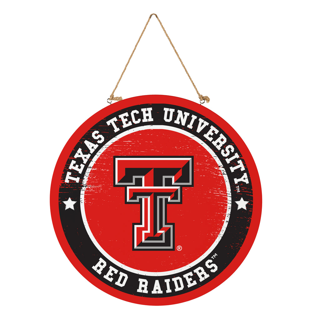 Display your Texas Tech pride with this round door decor, featuring the iconic Red Raiders logo. Perfect for any fan, it adds a spirited touch to your home or office entrance.