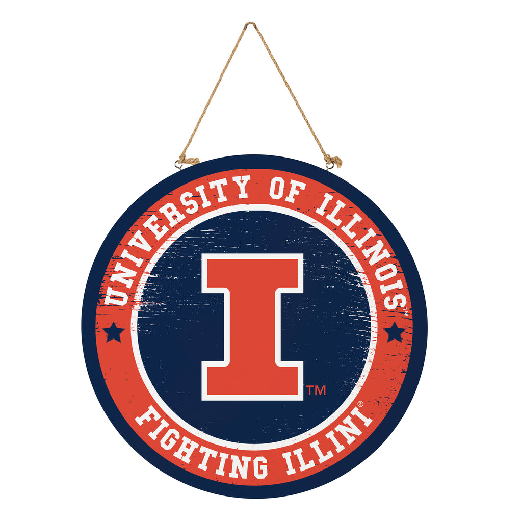 University of Illinois Round Door Decor with Hanging Rope, 18x18