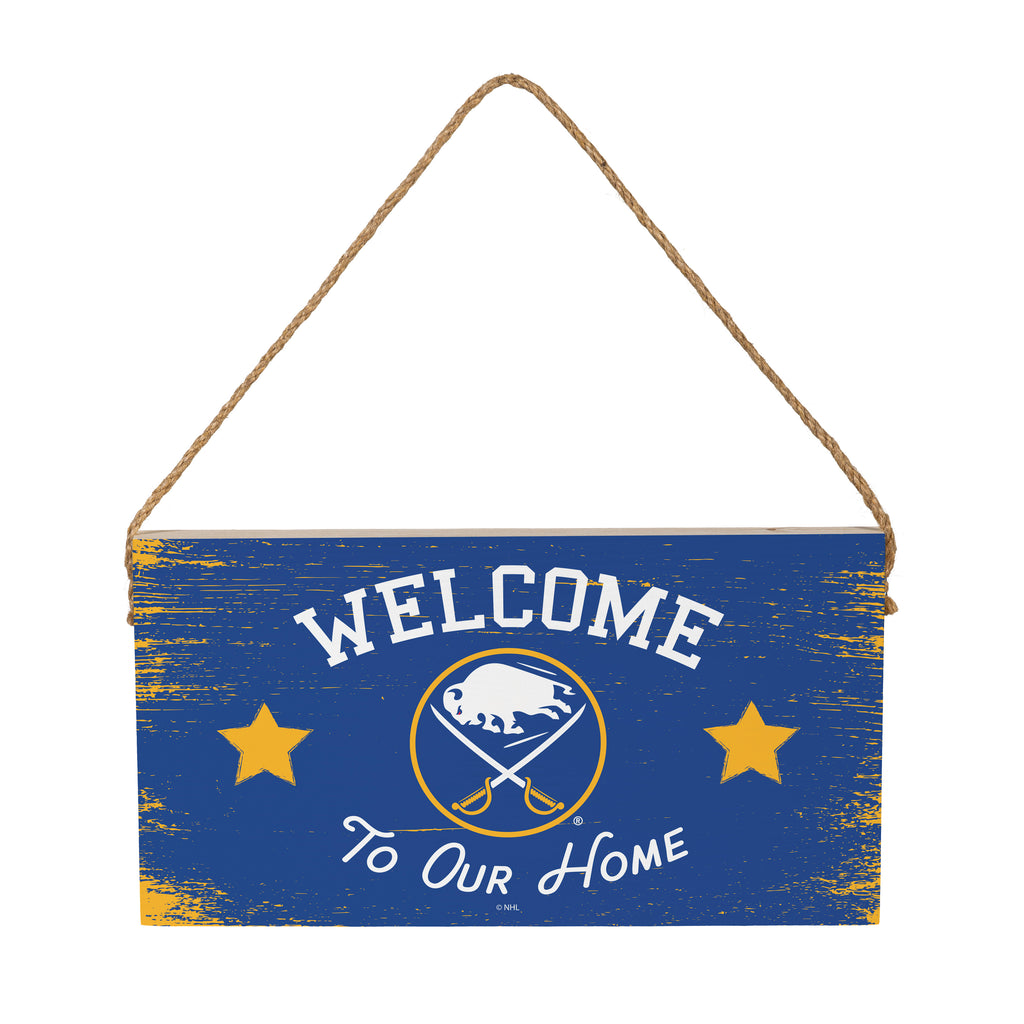 This Buffalo Sabres wood wall sign is perfect for showing team pride while adding a rustic touch to your home decor. Featuring the team's logo and a welcoming message, it's ideal for any fan's space.