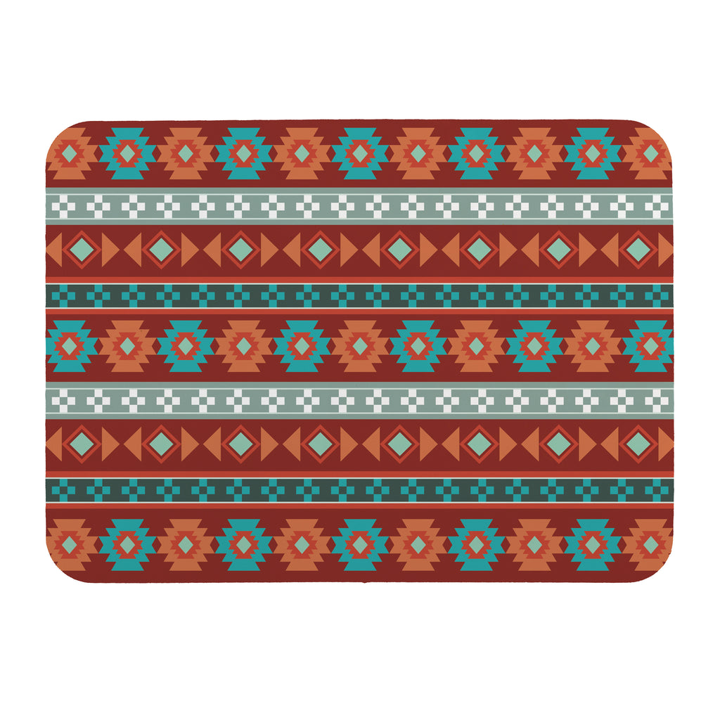 The Southwest Pueblo Drying Mat features a vibrant Aztec pattern, perfect for adding a touch of Southwestern charm to your kitchen. Its generous size provides ample space for drying dishes and glassware.