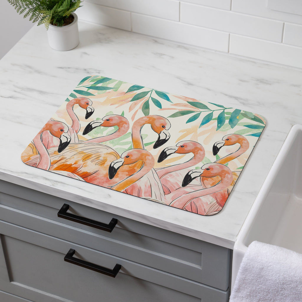 Brighten up your kitchen with the Palm Beach Flamingo Drying Mat, featuring a vibrant flamingo design perfect for summer vibes.