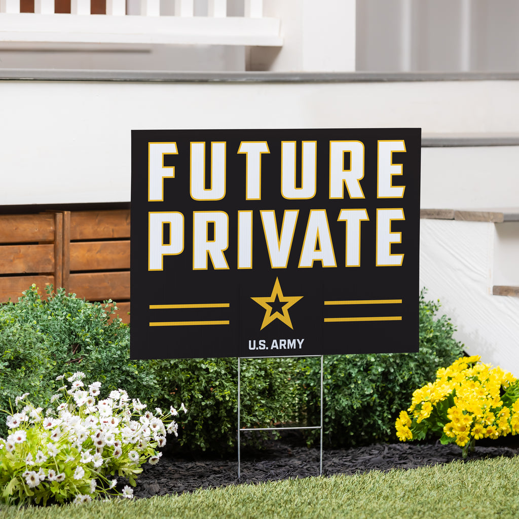 - Bold design with 'Future Private' and U.S. Army insignia for impactful visual appeal.