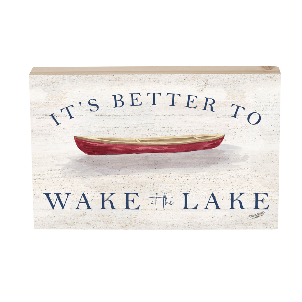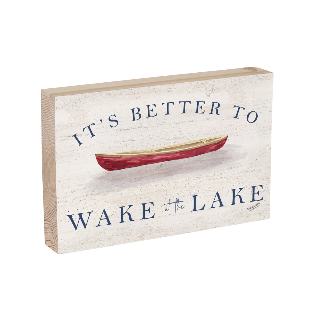 Enhance your home decor with the Lake Living Wooden Plock featuring the phrase 'It's Better to Wake at the Lake'. This charming wall decor piece brings a rustic and serene vibe to any indoor space.