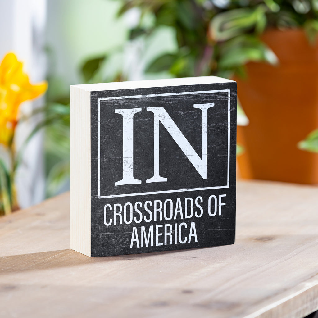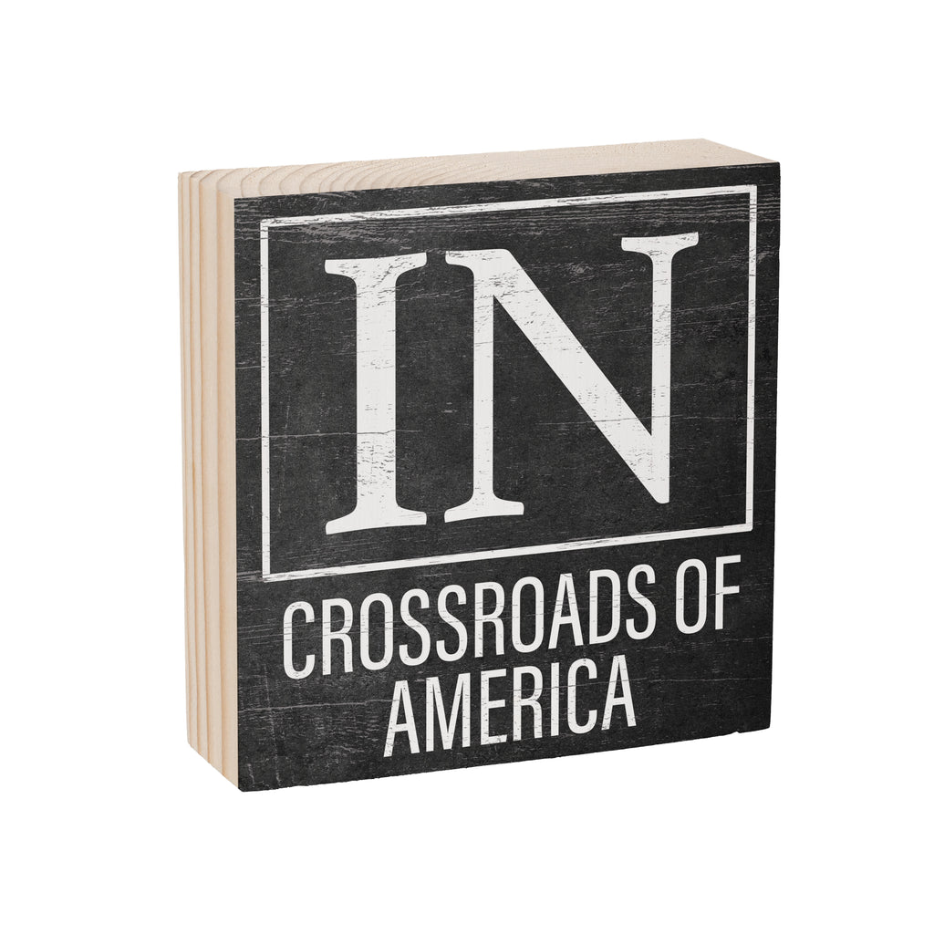 Celebrate Indiana with this charming wooden block, perfect for adding a touch of state pride to any room. The rustic design features 'IN' and 'Crossroads of America' in bold lettering.