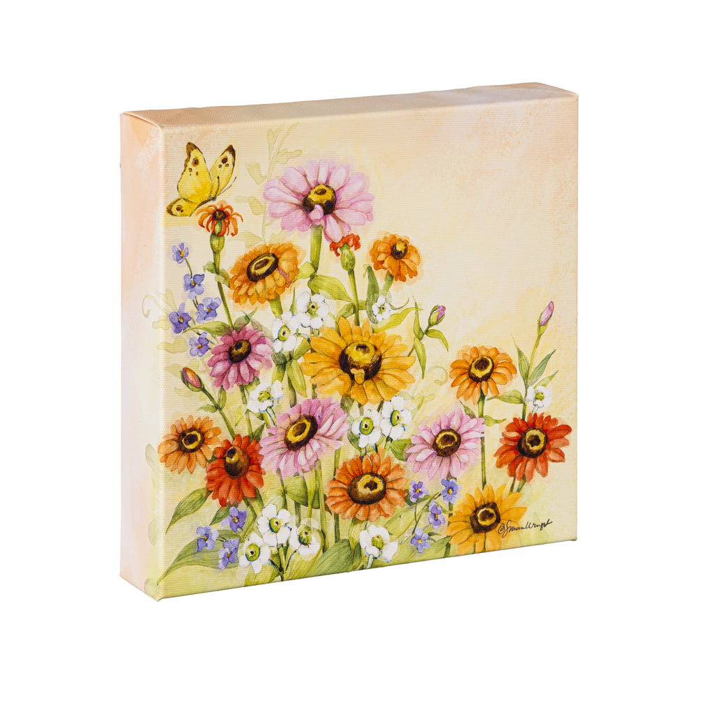Pollinator Garden Indoor Wall Decor, Textile, Floral Canvas, 8" L x 8" H, Asst of 4