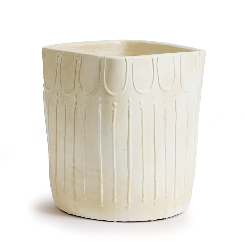 With a raised tribal pattern and creamy white finish, the Ryder series really stands out. Scaled to impress, this cachepot is sure to stand out.