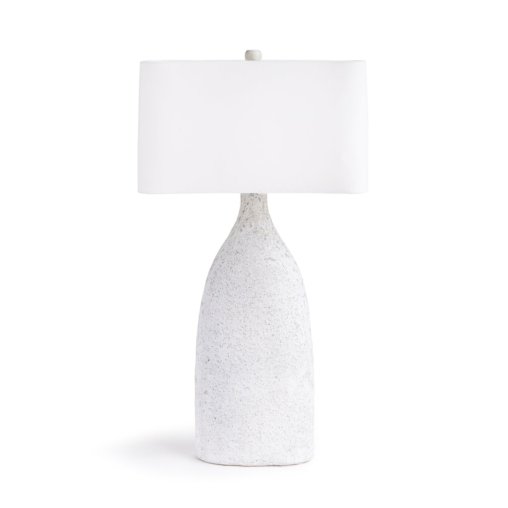A stone wash is used to create a natural look to this asymmetrical, well-scaled lamp. Topped with a rectangular shade, it is a smart choice for the modern home.