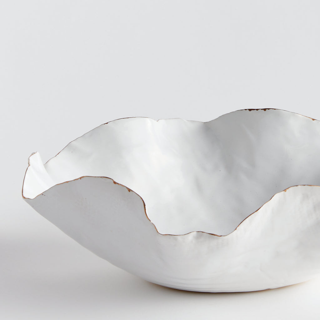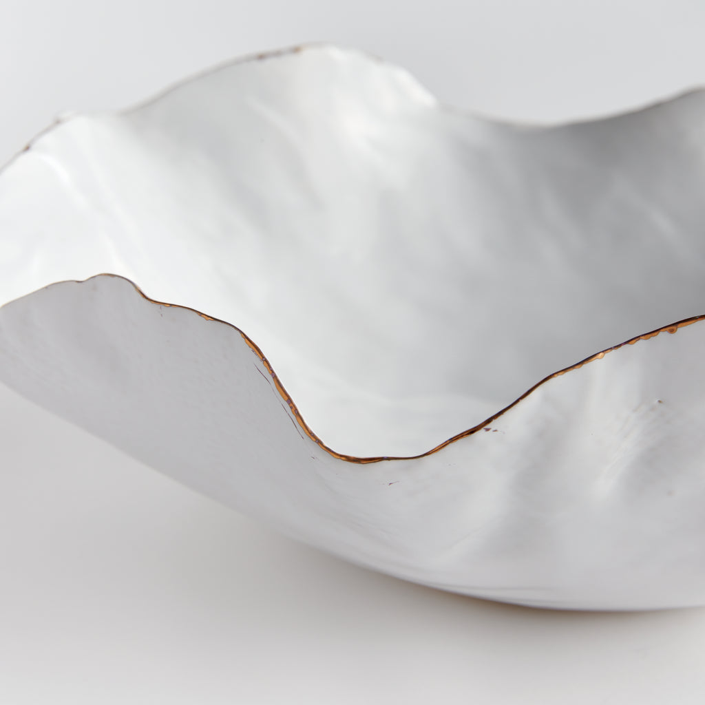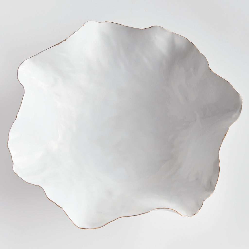 With crimped edges and natural form, this decorative tray is a real statement-making centerpiece. The hand-brushed gold tipped edges are electroplated for shine and durability. Place atop a few art books on coffee table, or on a side table for a stunning look.