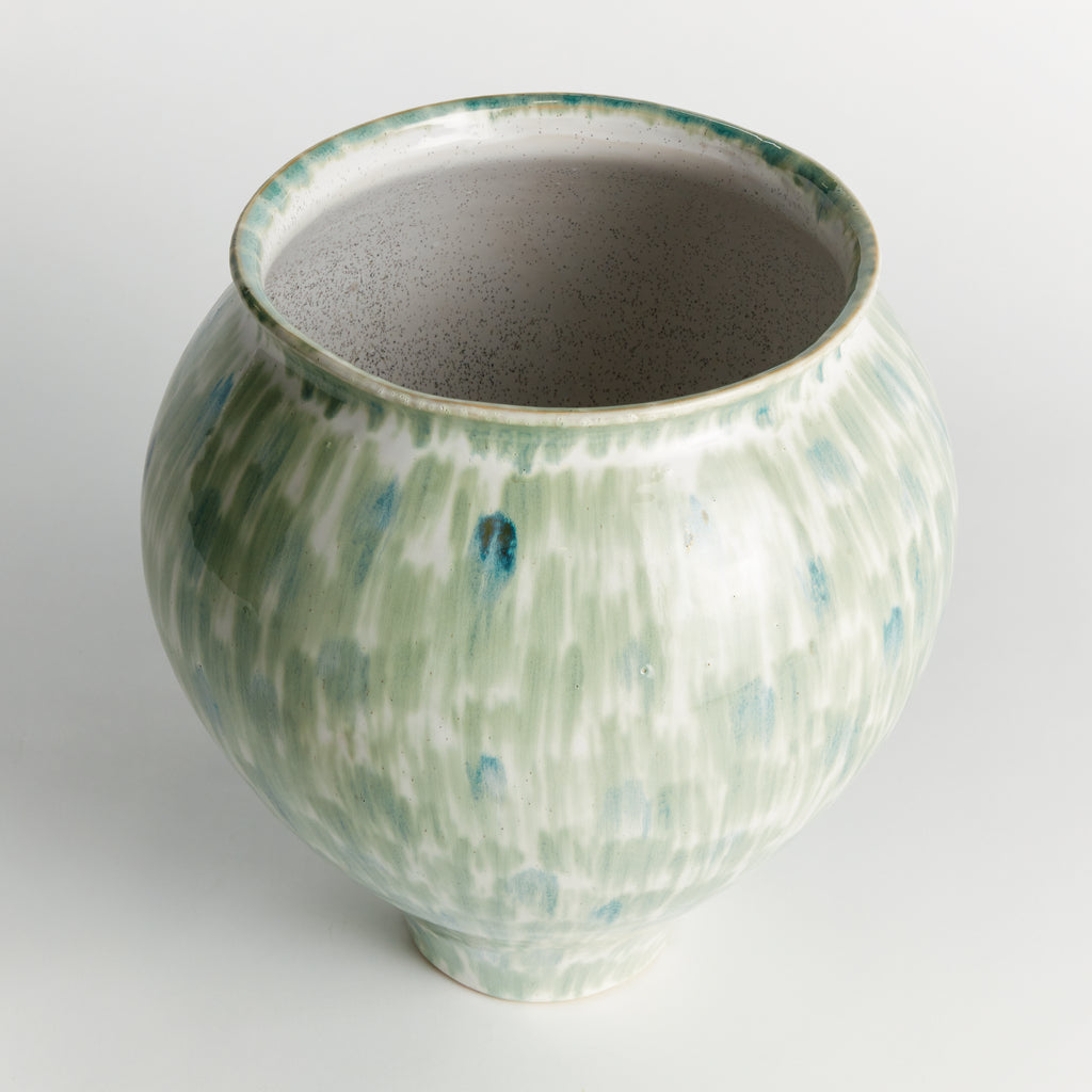 Made of a high-fired, durable stoneware using a slip cast mold, a whole lot of artistry goes into this vase. But the real showstopper is the hand painted glaze. A depth of color on full display. A remarkable accent for bookshelf, kitchen counter or coffee table.