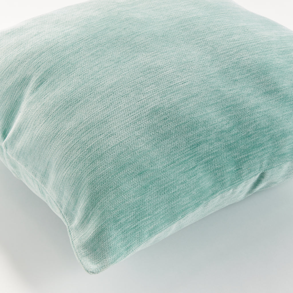 The indoor pillow that lives beautifully outdoors. Enjoy the upscale luxury and durability of Jacquard. With a woven seafoam pattern, it plays well with any palette. This pillow is weather resistant and responsibly made. Filled with 100% recycled fibers.