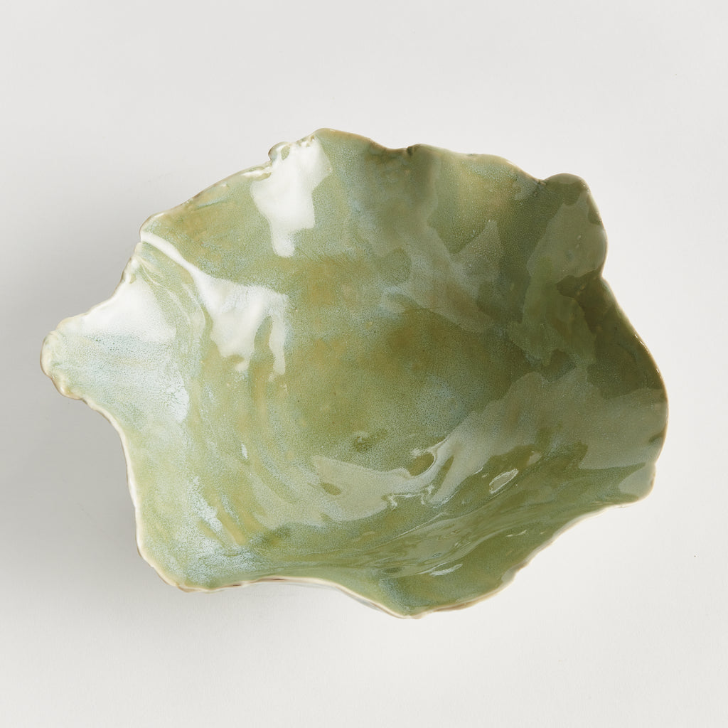 Thin, glossy & modern. A durable stoneware, made with an innovative slip cast process to be as elegantly thin as porcelain, this intricate decorative tray is a true treasure. The inherently beautiful glaze varies from piece to piece, due to the organic nature of the forms. Fill with colorful orbs or display as is for a noteworthy statement piece.