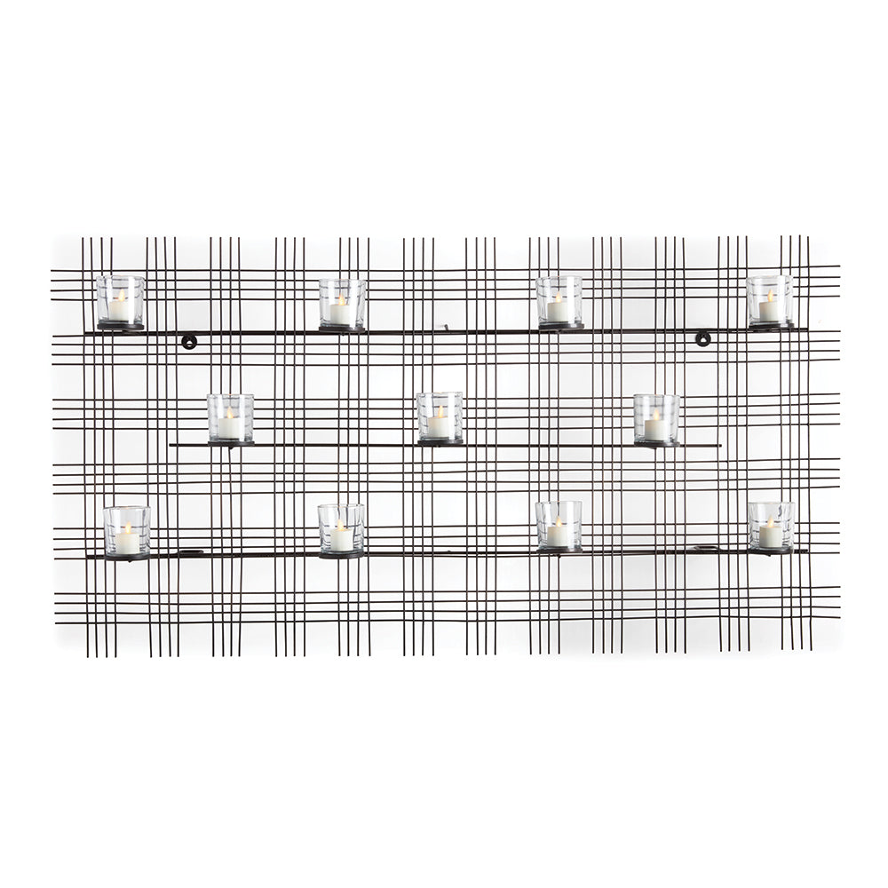 A great alternative to wall art, the Barcelona commands the room with texture and light. A tartan metal pattern and series glass candleholders combine to help define the space.