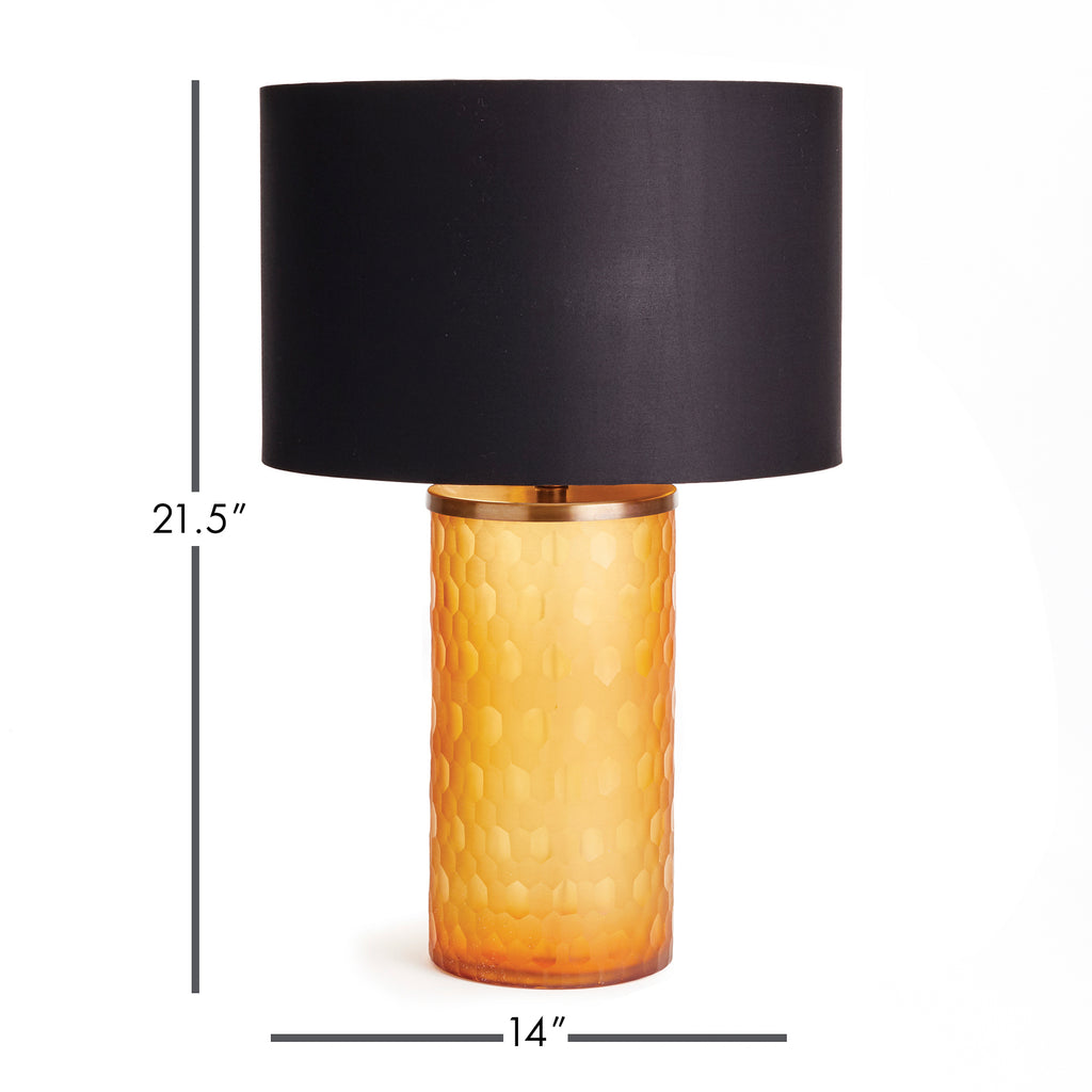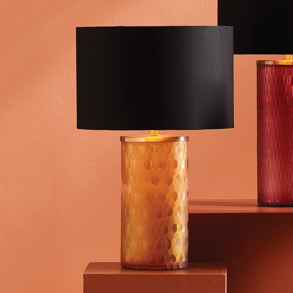 Graphic pattern etched in a thick glass vessel of deep jewel tones, the Linnea Lamp is a gallery-worthy piece for the home. Modern in scale and form, this towering beauty effortlessly commands the room.