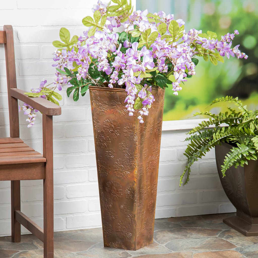 Embossed Metal Front Door Planter, Burnt Copper Sunflowers,pha060