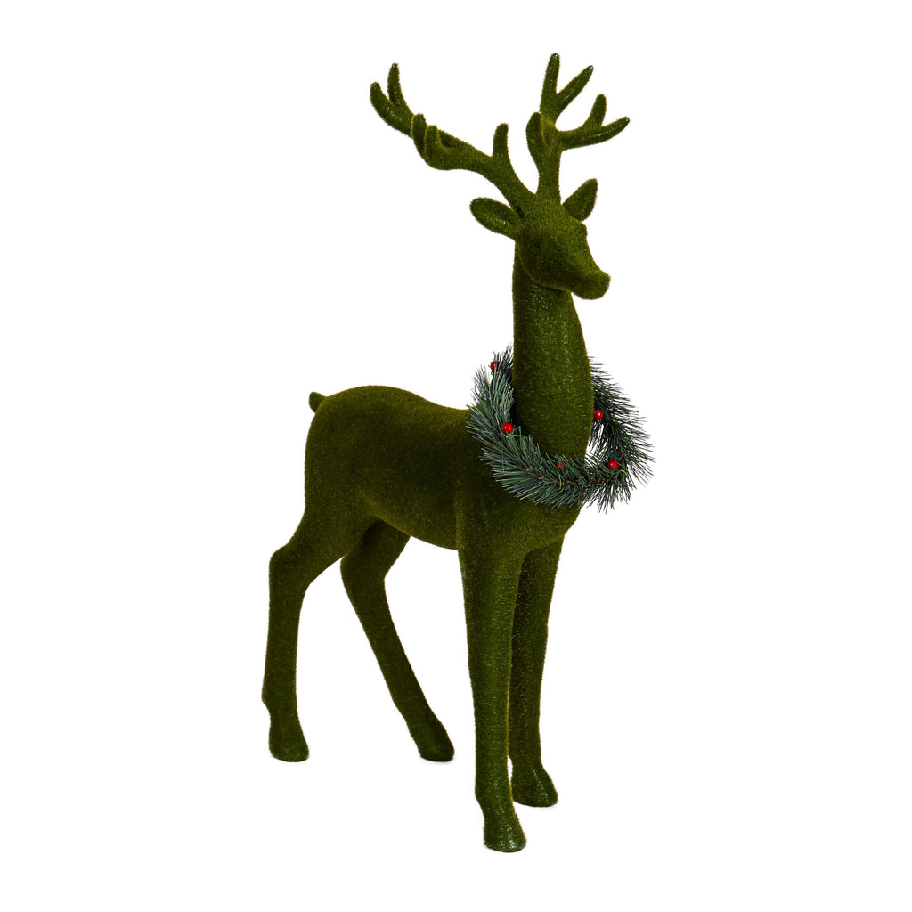 21.65" Flocked Standing Deer with Wreath Statuary, Green,phc337