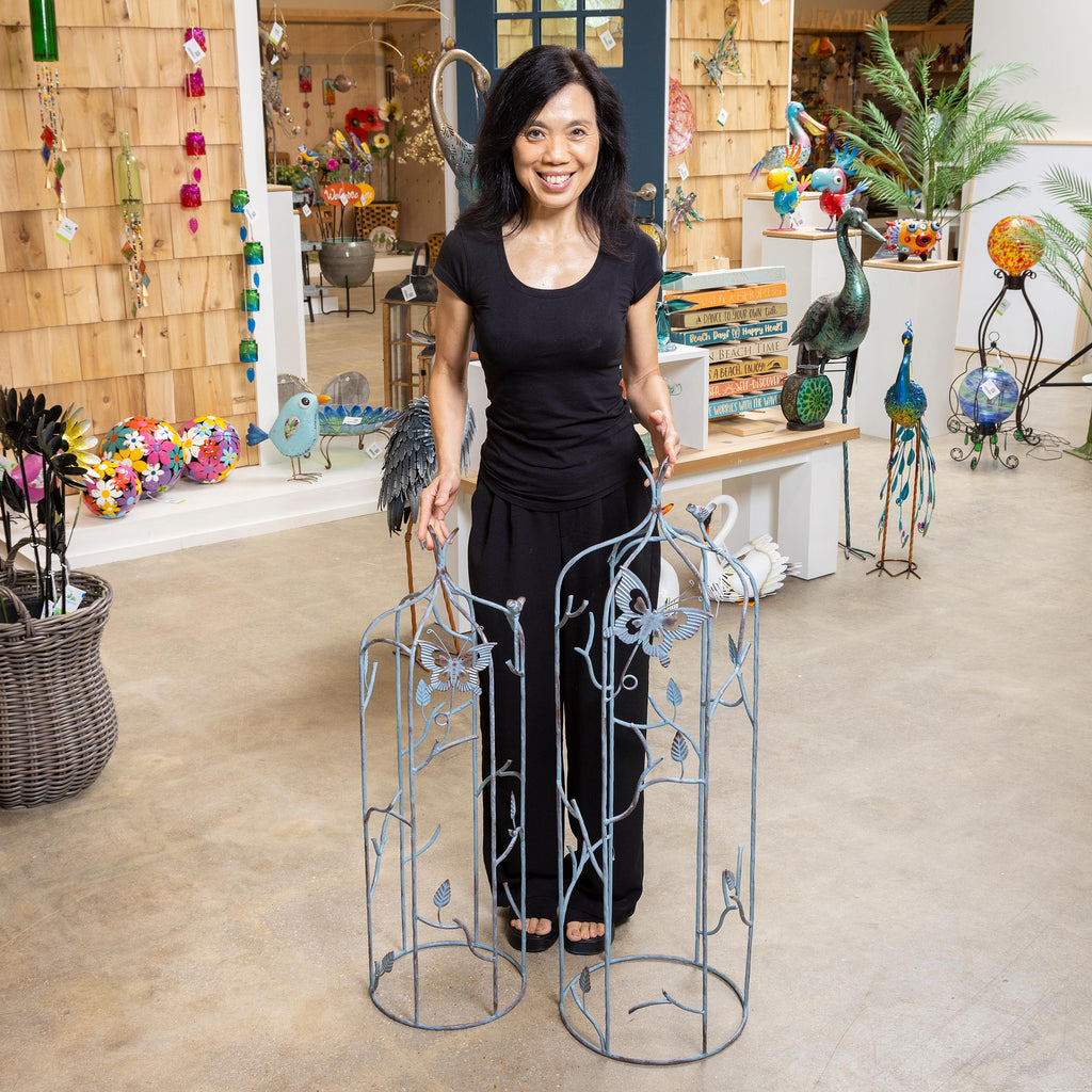 Set of 2 Metal Butterfly Obelisk with Verdigris Finishing