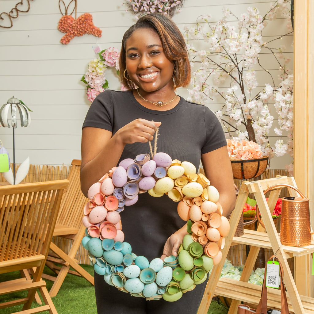 17.5" Easter Egg Rainbow Woodcurl Wreath,phl252