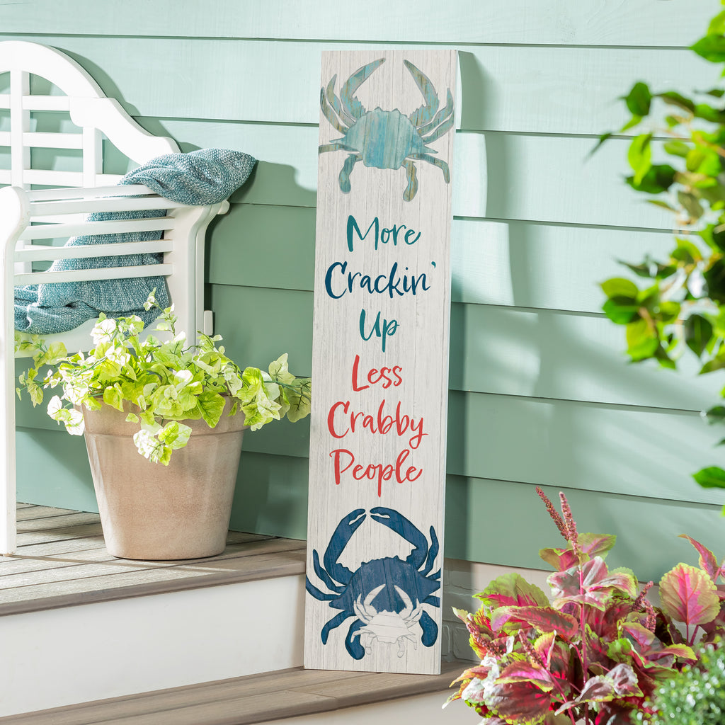 Add a touch of coastal charm to your porch with the Coastal Porch Leaner Welcome Crabby sign, perfect for creating a welcoming vibe. Its playful design features a charming crab motif and vibrant colors that stand out.