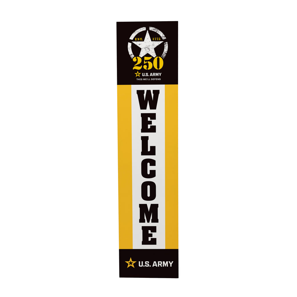 Celebrate the U.S. Army's 250th anniversary with this striking leaner, perfect for adding a patriotic touch to your porch or garden. Featuring a bold 'WELCOME' message, it's a unique decor piece for any outdoor setting.