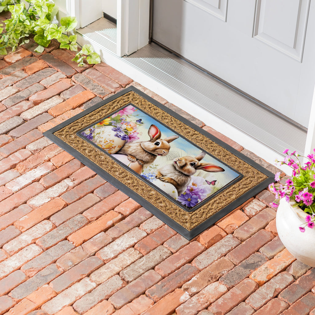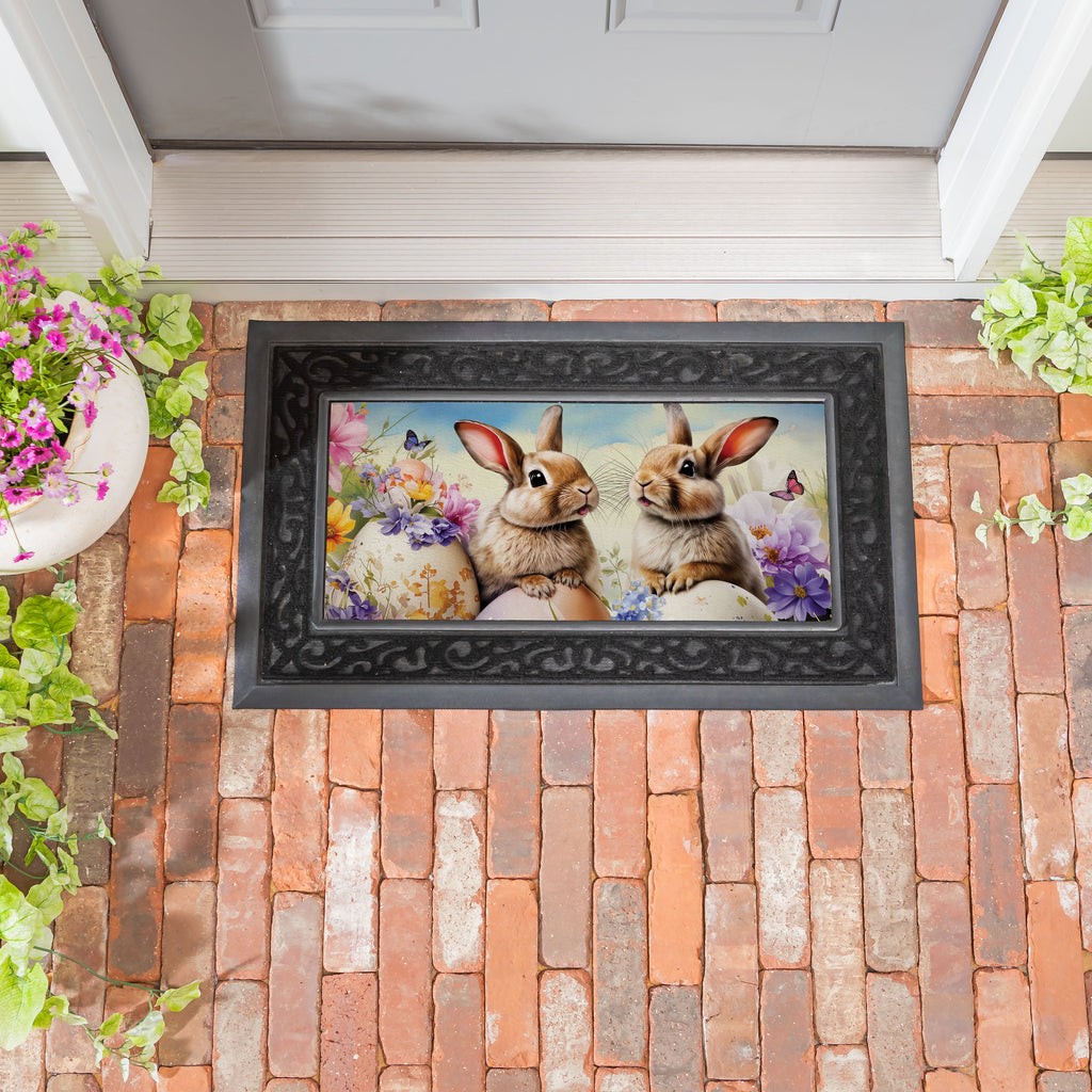 Welcome spring with the charming Bunny & Easter Egg Sassafras Switch Mat, featuring delightful bunnies and vibrant flowers. This mat adds a festive touch to any entryway.