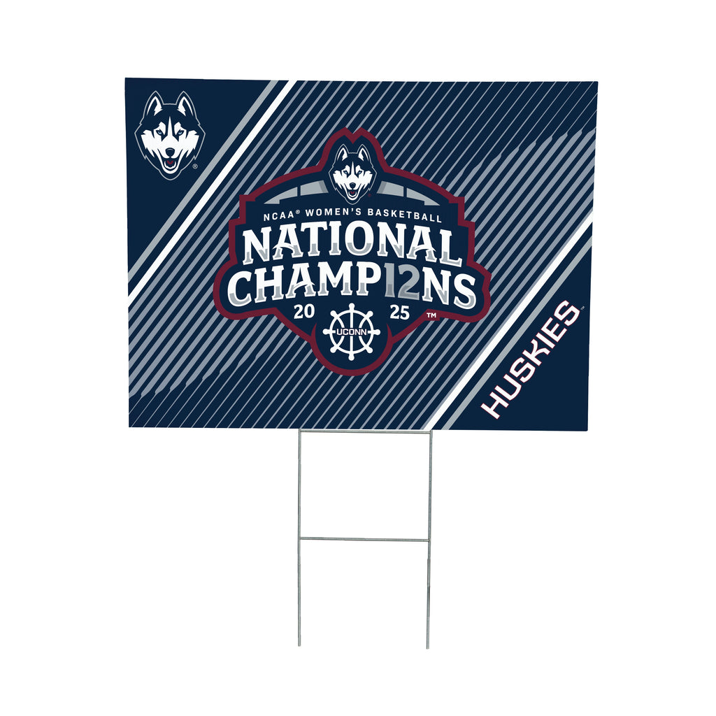 Celebrate the triumph of the University of Connecticut Women's NCAA Basketball team with this vibrant yard sign. Perfect for any UConn fan, it showcases your pride in the team's victory.