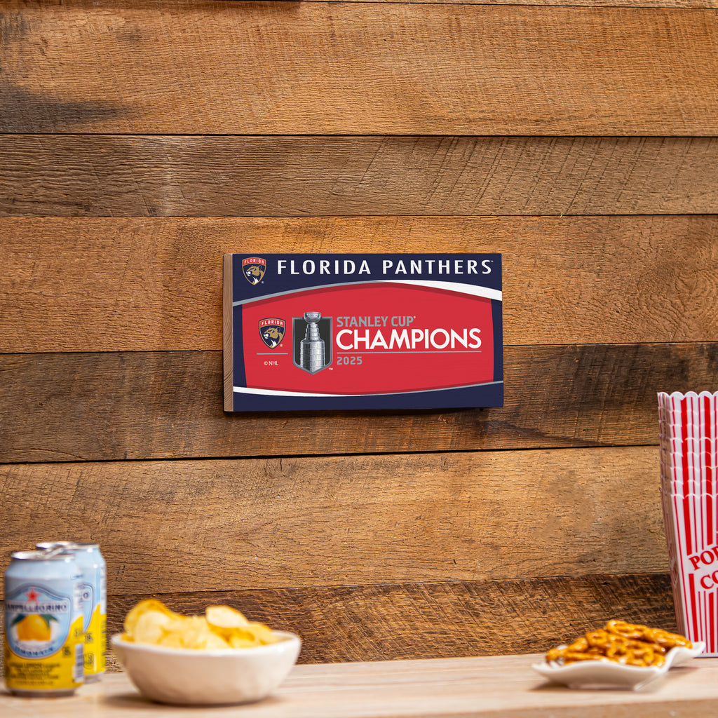 Celebrate the Florida Panthers' triumphant 2025 Stanley Cup victory with this stylish wood wall sign. Perfect for showcasing your team pride in any room of your home.