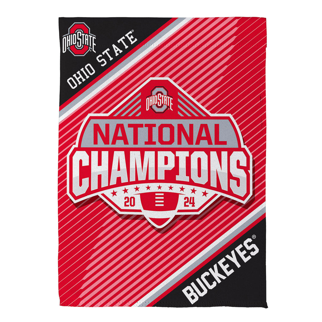 Celebrate the Ohio State Buckeyes' 2024 National Championship victory with this vibrant house flag. Made from premium suede, it offers durable outdoor display.