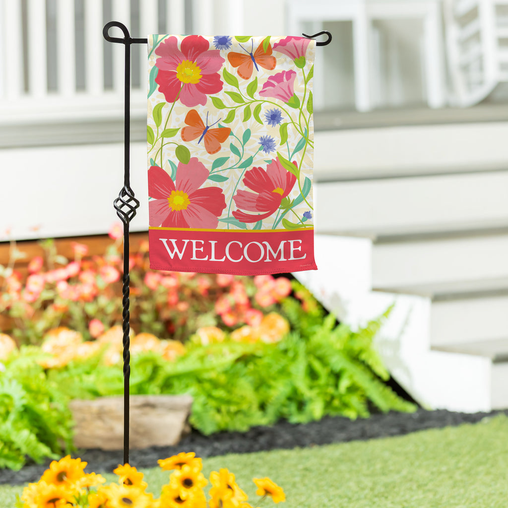 Brighten your outdoor space with the Wildflower Bunch Suede Garden Flag. This charming flag features vibrant spring flowers and a welcoming message, perfect for adding a touch of color to your garden.