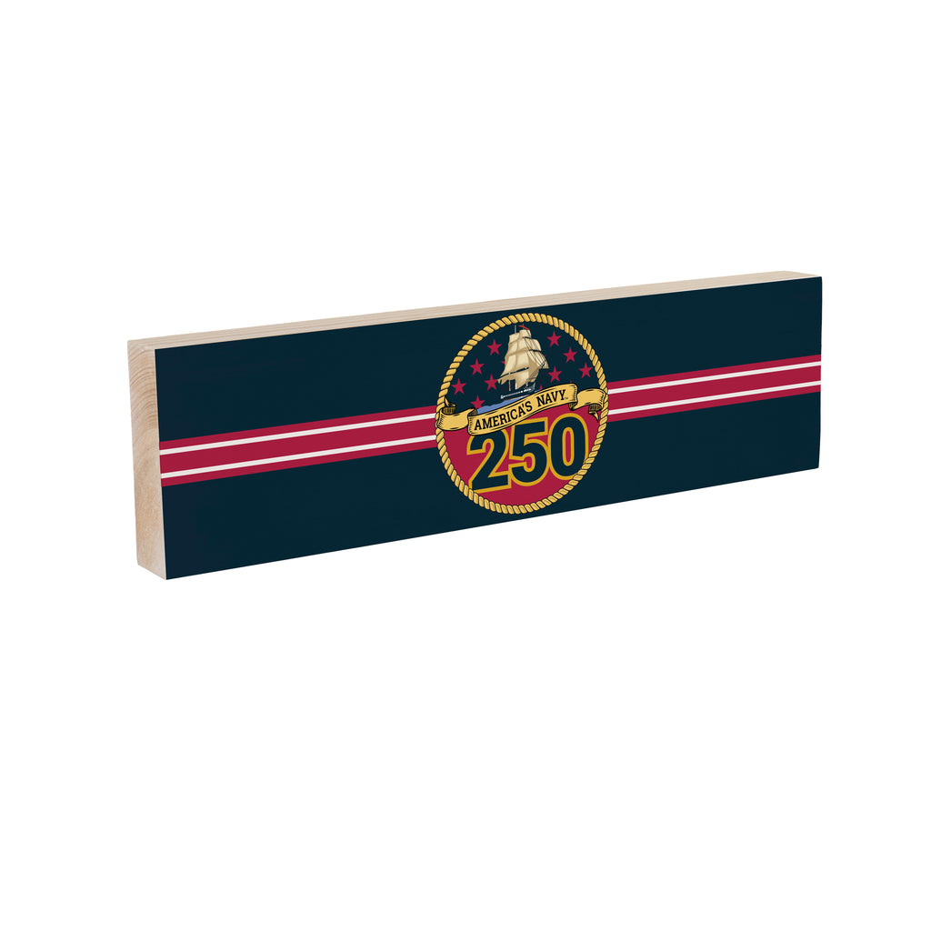 Celebrate the 250th anniversary of the US Navy with this elegant mantle sign, featuring a bold emblem design. Perfect for adding a patriotic touch to any room.
