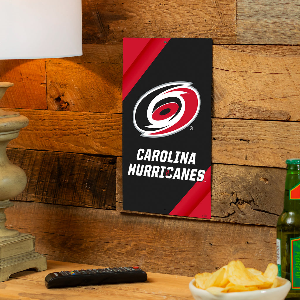 Show your team spirit with this Carolina Hurricanes metal wall sign, perfect for any fan's home decor. Its vibrant design makes it an eye-catching piece for any room.