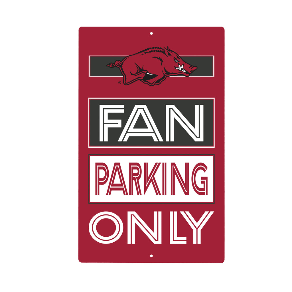 Celebrate your Razorbacks pride with the University of Arkansas Fan Parking USA Metal Wall Sign, perfect for any fan's space. This metal sign is both durable and stylish, featuring the iconic razorback design.