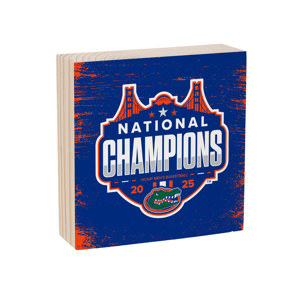 Celebrate the University of Florida's NCAA Men's Basketball Championship with this striking wooden plaque, perfect for any fan's home decor.
